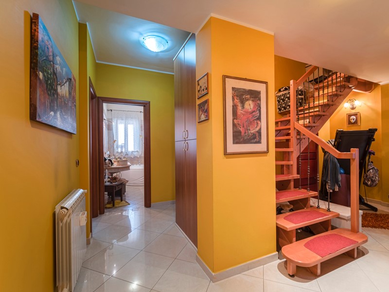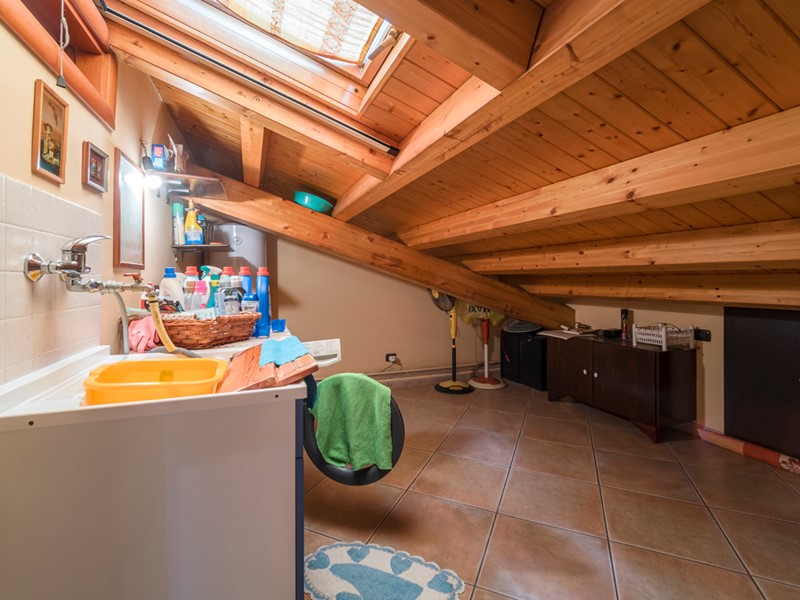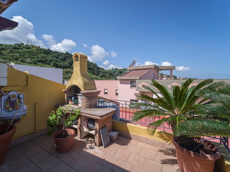 Una scala interna conduce al piano mansardato, dove troviamo un'ulteriore zona giorno living, un bagno, un ampio open space con possibilità di ricavare altre due stanze, locale lavanderia e un terrazzino con vista panoramica sulle Isole Eolie. L'appartamento è dotato di impianto fotovoltaico installato sul tetto, che garantisce un significativo risparmio energetico. Completa la proprietà un box auto doppio.