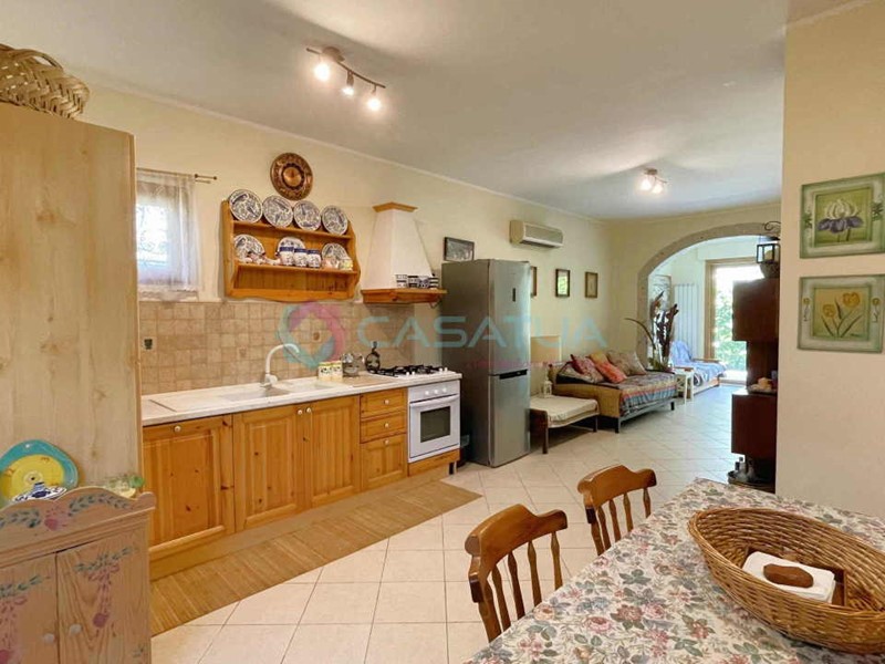 L’immobile si apre su una luminosa zona giorno in stile openspace con soggiorno e angolo cottura, dalla quale si accede a una spaziosa corte esterna privata, ideale per pranzi all’aperto o momenti di relax. La corte è arricchita dalla presenza di una comoda doccia esterna e da lampioni installati per l’illuminazione serale, elementi che ne aumentano la fruibilità e il comfort anche nelle ore serali o dopo una giornata al mare.