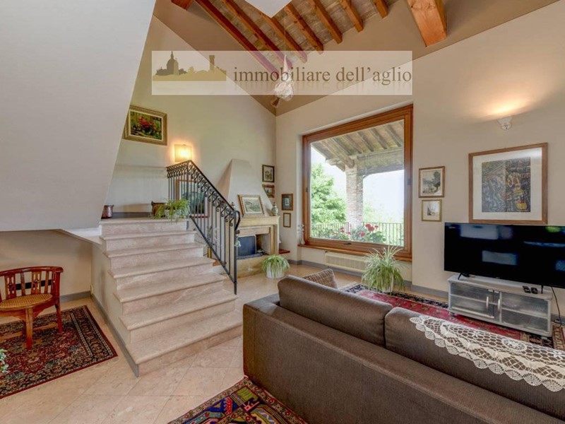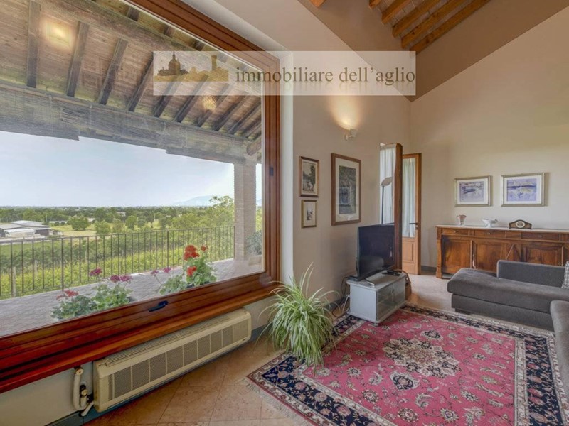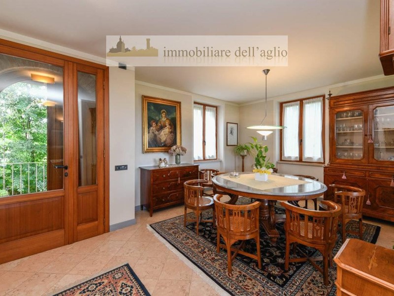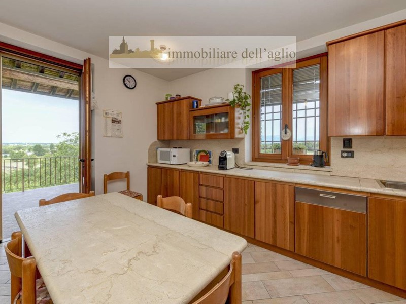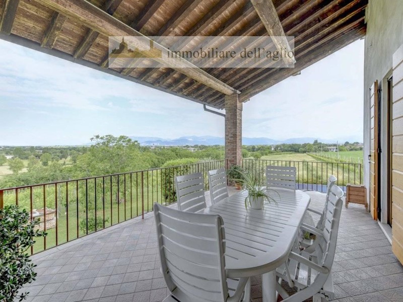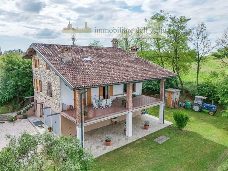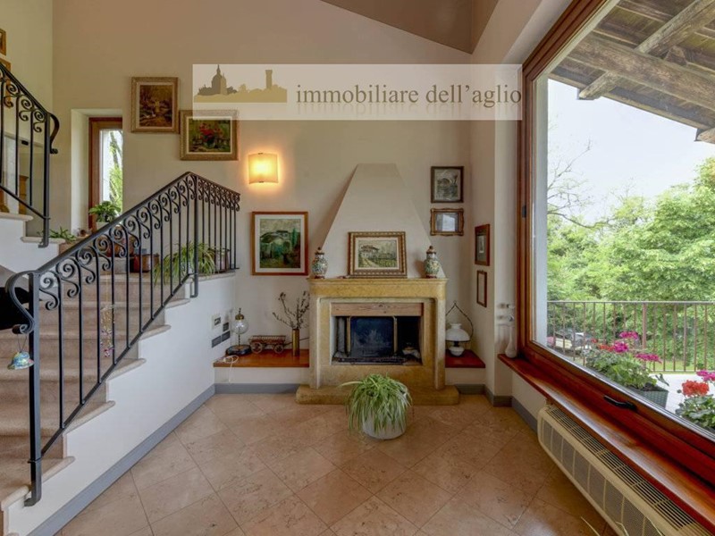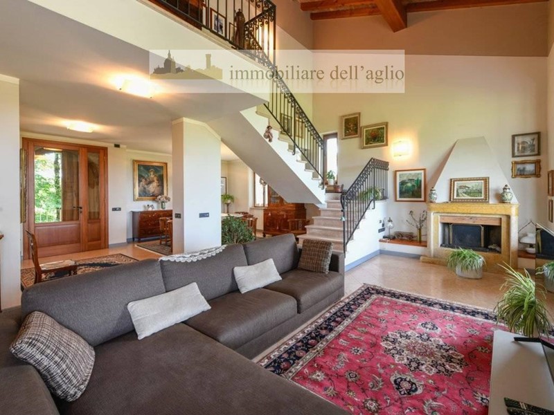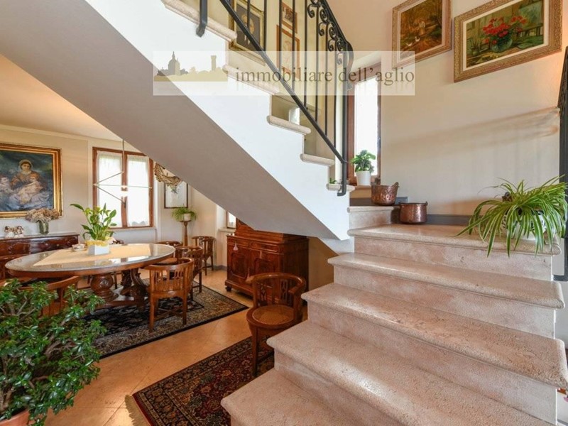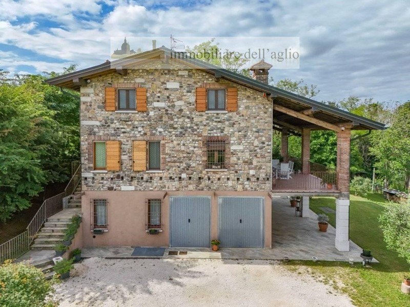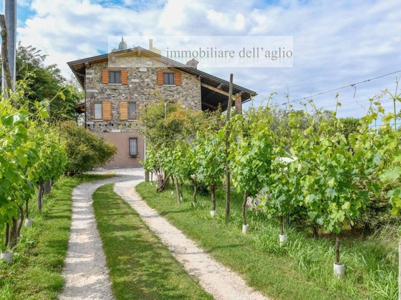 Un suggestivo viale fiancheggiato da filari di vigne conduce alla dimora, una residenza di grande metratura disposta su due livelli, con ingresso da una elegante scala esterna. Attraverso un maestoso portale in legno si accede a un salone imponente, impreziosito da un raffinato camino. La cucina abitabile, luminosa e accogliente, si apre su un ampio porticato coperto, offrendo una vista mozzafiato sulle Prealpi. A completare il piano vi sono uno studio, un pratico ripostiglio e un bagno di servizio.