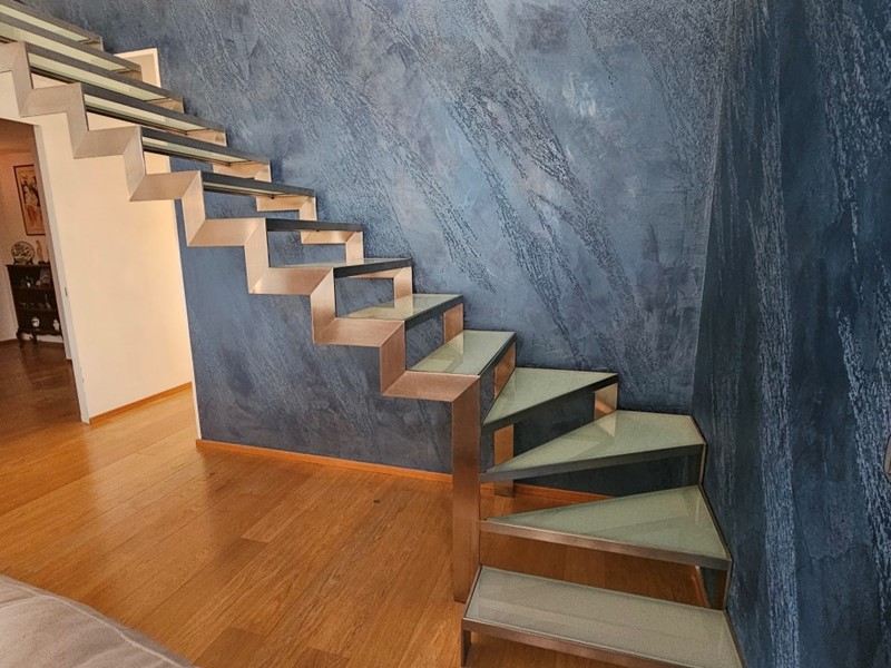 L'unità immobiliare è così composta: ingresso su ampio salone al quarto piano, dove troviamo due camere da letto (di cui una con cabina armadio), uno studio e due bagni, attraverso una scala interna in acciaio inox e vetro si accede al quinto piano (mansardato) nel quale troviamo una seconda zona living con cucina, una camera, un bagno, una lavanderia un ripostiglio e una confortevole e spaziosa veranda con vista panoramica su Ragusa.
