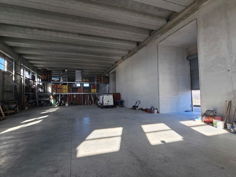 L'immobile, avente 3 ingressi, ha una metratura di circa 800 mq con altezza 7,70 m adibito a capannone ed un corpo uffici di circa 350 mq su tre livelli (una parte da rifinire internamente)