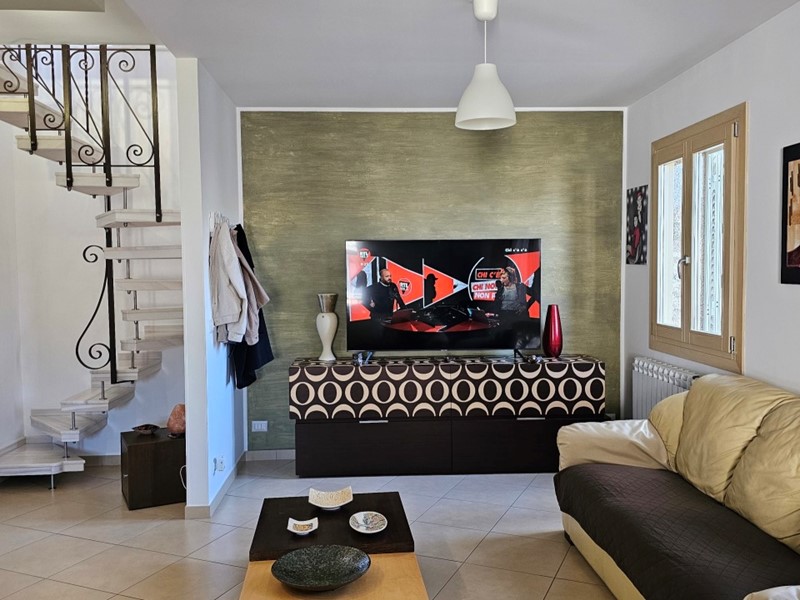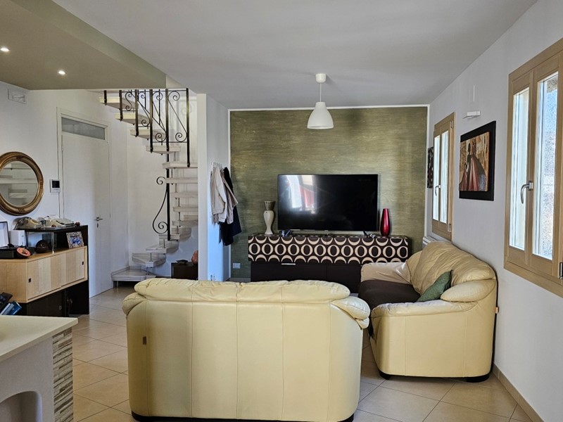 L’immobile, con una metratura di circa 110 mq, è composto da ampia e luminosa zona living con cucina a vista, due camere da letto, bagno e due balconi al secondo piano; tramite scala a chiocciola si accede al terzo piano dove troviamo una lavanderia, un bagno ed un vano, oltre ad un ampio terrazzo.