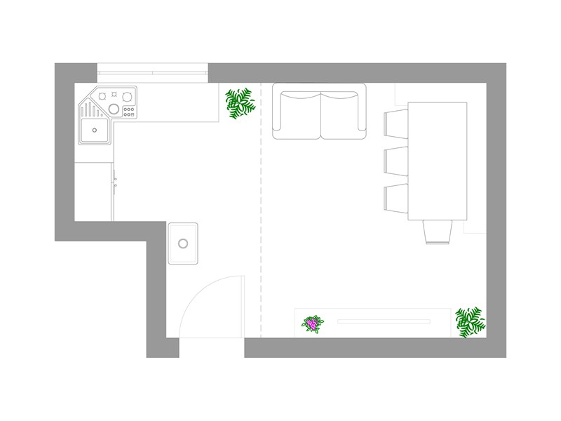 La funzionale lavanderia finestrata con doccia completa la zona giorno.