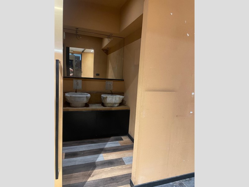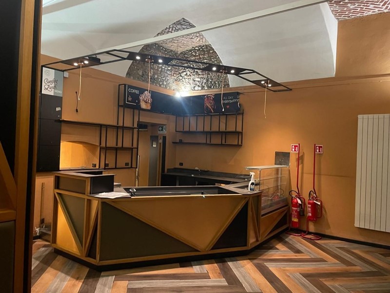 - piano Terra: presente bagno per disabili, bancone bar già installato e predisposizione per un secondo bancone, adattabile in base alle esigenze operative. La sala interna può ospitare circa 50 posti a sedere con tavoli da 50x50 cm.