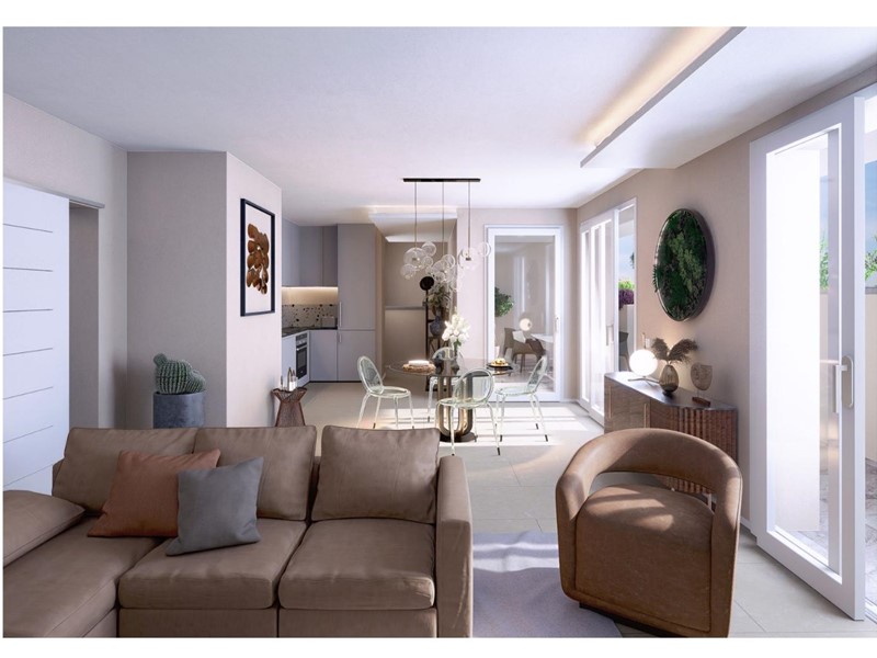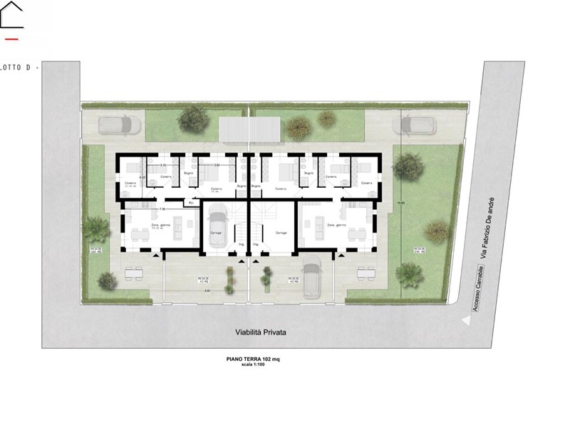 Gli appartamenti al piano terra prevedono un' AMPIA superficie distribuita su un unico livello e composta da AMPIA ZONA GIORNO, TRE CAMERE, DOPPI SERVIZI, RIPOSTIGLIO e STUPENDO GIARDINO ESCLUSIVO su 3 lati.