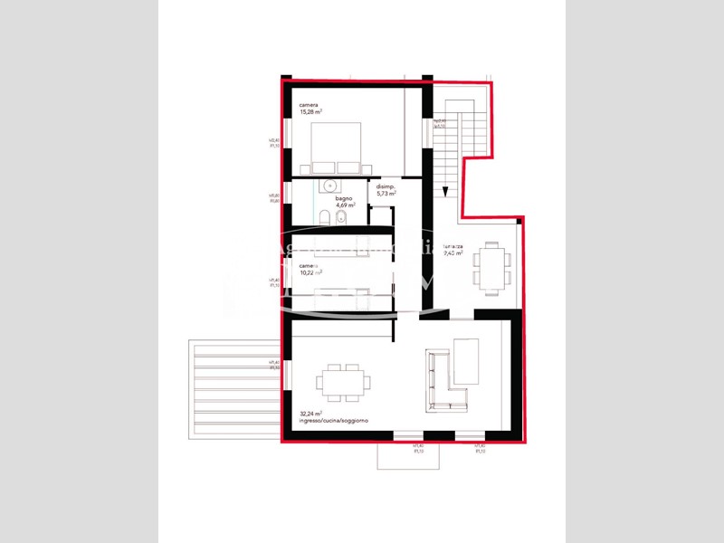 • Superficie: Circa 90 mq, oltre terrazza abitabile con pergolato, giardino e posto auto privato.