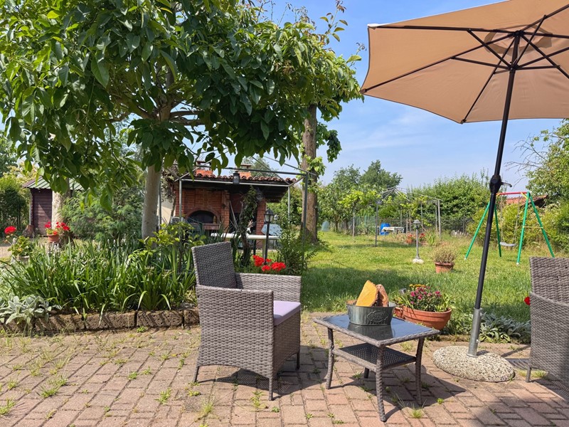 La presenza di una cantina al piano interrato offre ulteriore spazio per riporre e organizzare al meglio gli ambienti domestici. Inoltre, il basso fabbricato nel cortile funge da comoda autorimessa per tre auto, con annesso locale deposito per gli attrezzi da giardino e altro materiale.