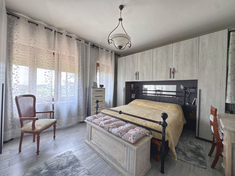 L'abitazione si sviluppa su due piani, offrendo ampi spazi e una distribuzione intelligente delle stanze.