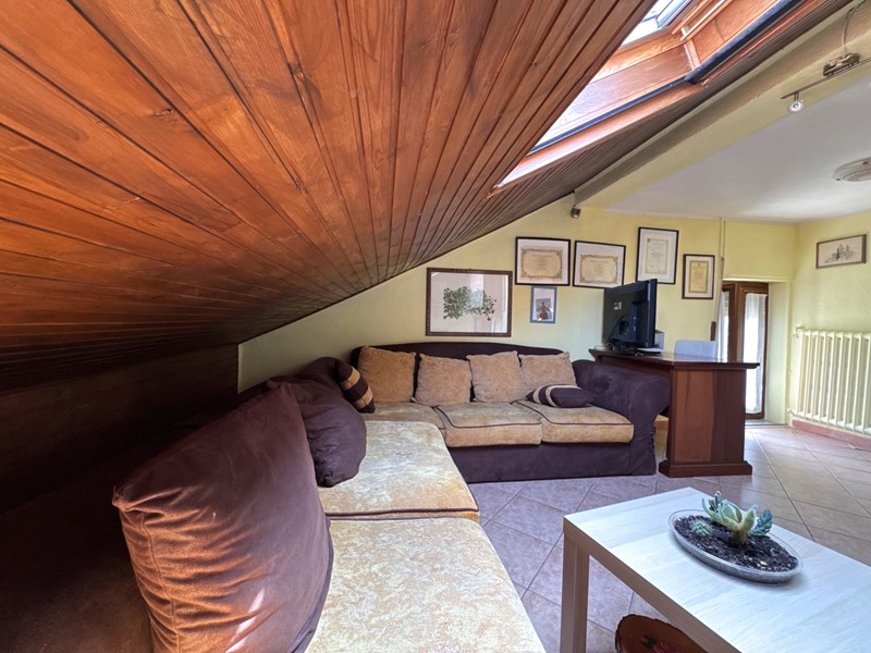 Al piano terra, troverai un accogliente soggiorno, una cucina abitabile, due camere da letto, un bagno e una veranda, mentre il primo piano ospita una seconda cucina, una camera da letto, un bagno, un balcone e, nella zona mansardata, uno studio e un'altra camera.