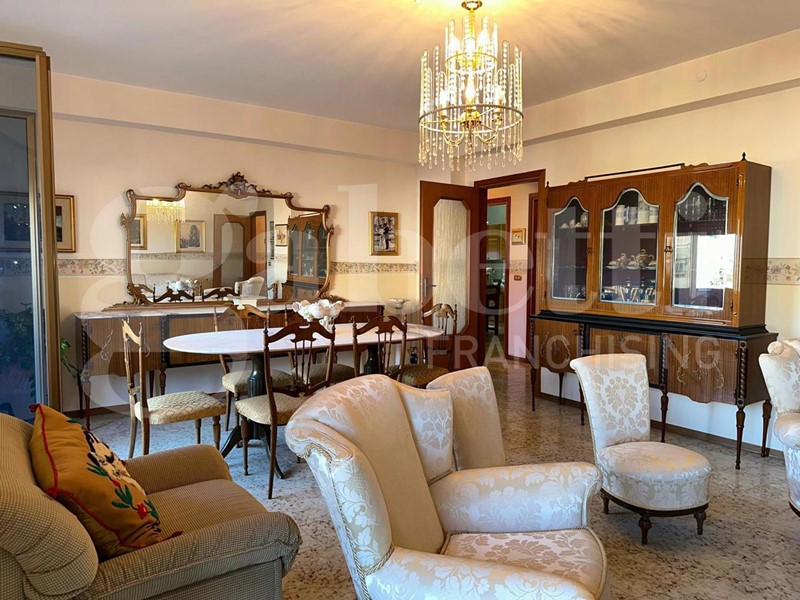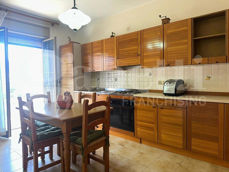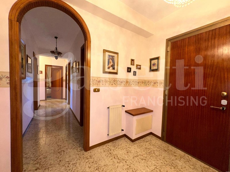 Ingresso, ampio soggiorno doppio con balcone vista panoramica sul mare, corridoio, cucina abitabile con balcone e ripostiglio, camera da letto matrimoniale, altra camera da letto , bagno con doccia e finestra, altro bagno con vasca e finestra sul pozzo di luce.