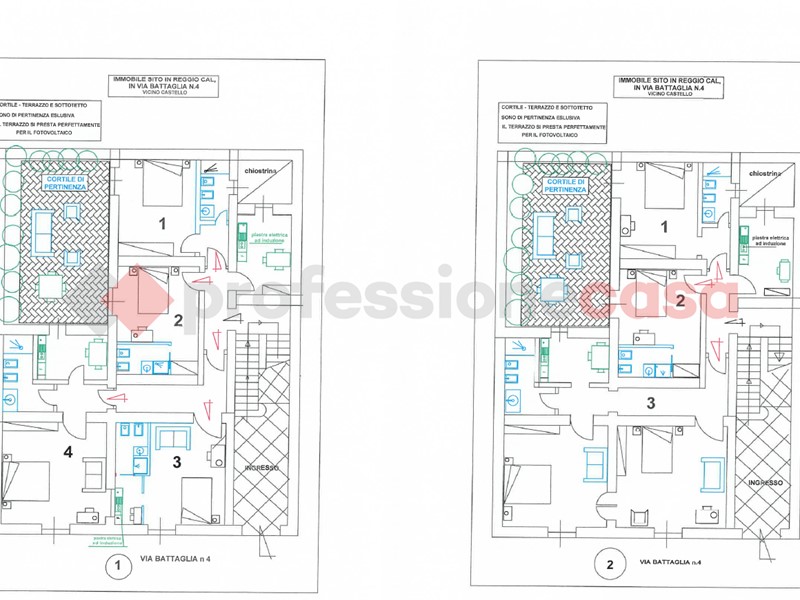 Reggio Calabria: Proponiamo in vendita un ampio appartamento ad uso abitativo nel comune di Reggio di Calabria (RC). Situato in posizione centralissima, questo appartamento di 145 mq offre un'ottima opportunità per chi desidera vivere nel cuore della città. L'immobile dispone di cinque locali, quattro stanze e due bagni, offrendo ampi spazi per una famiglia o per  realizzare un bed and breakfast (ipotesi progetto in galleria immagini) a pochi passi dal castello Aragonese, Corte di Appello e Duomo permettendo  di raggiungere comodamente il corso principale della città e la via marina. L'appartamento è dotato di un cortiletto privato. La palazzina, che ospita solo due appartamenti, garantisce tranquillità e privacy e assenza di condominio.  E' inoltre possibile acquistare lastrico solare e locale di deposito posto al piano secondo.