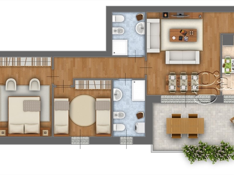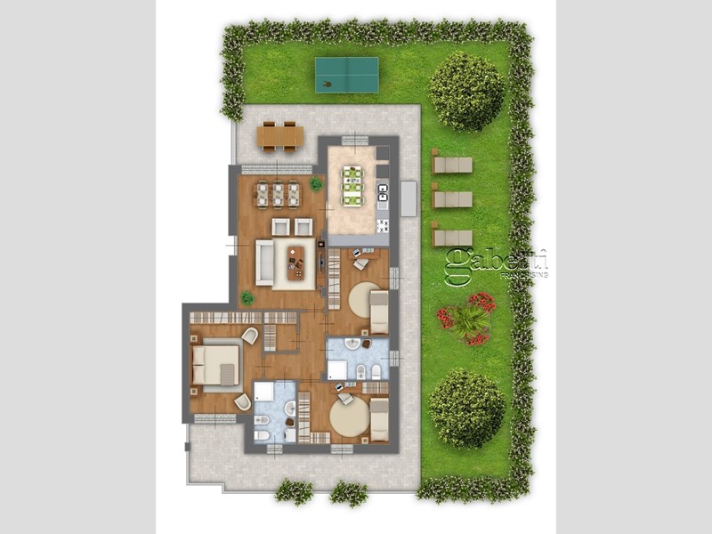 Immagina ampi interni che si affacciano su terrazzi soleggiati o giardini privati, perfetti per ospitare cene con gli amici, momenti di relax e giornate all’insegna del benessere anche con i tuoi amici a quattro zampe. Qui, ogni ambiente è studiato per regalarti qualità di vita senza compromessi.