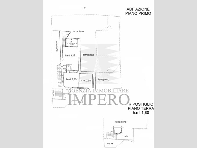Al piano terra troviamo un ingresso su disimpegno, un’ampia zona giorno, cucina abitabile, due camere da letto e un bagno.