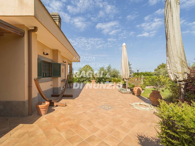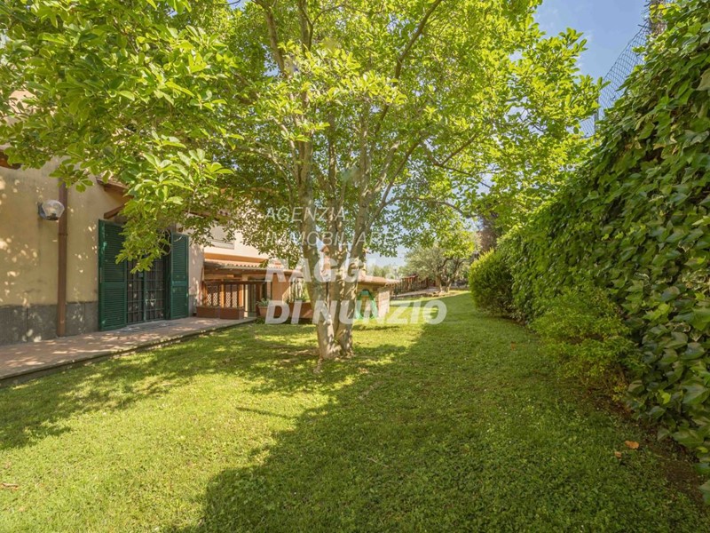 Nel rinomato Residence "Colline di Lucullo", situato nella prestigiosa zona Salè di Frascati, si trova una splendida porzione di bifamiliare di mq 400, caratterizzata da una disposizione sfalsata dei tre livelli, che dona dinamismo e armonia agli spazi. Al piano terra, un maestoso salone di rappresentanza con camino e ampie vetrate panoramiche, regala un'atmosfera accogliente e luminosa. Sullo stesso piano, una spaziosa cucina abitabile, ideale per chi ama cucinare in un ambiente funzionale e ben collegato con la zona giorno. Salendo tre gradini troviamo la zona notte, composta da tre camere da letto ben distribuite, di cui una con bagno en suite e spogliatoio. A completare questo livello, un bagno di servizio. Al piano superiore troviamo un'ampia zona giorno con un'ulteriore camera, bagno e un ampio terrazzo panoramico, perfetto per godere della bellezza delle colline circostanti. Il piano seminterrato, è pensato per il comfort e la versatilità: una sala hobby con camino offre un ambiente ideale per il tempo libero, mentre zona lavanderia, dispensa, camera di servizio e garage doppio, completano gli spazi con praticità e funzionalità. Portici e balconi, aggiungono un tocco di eleganza, permettendo di vivere gli spazi esterni in piena tranquillità e riservatezza. All'esterno, un meraviglioso giardino privato di mq 1000, impreziosito da ulivi secolari, dona un'atmosfera mediterranea e un angolo di pace immerso nella natura. Questa Villa rappresenta un'opportunità unica per chi cerca una dimora esclusiva, dove ogni dettaglio è pensato per il massimo comfort e benessere.