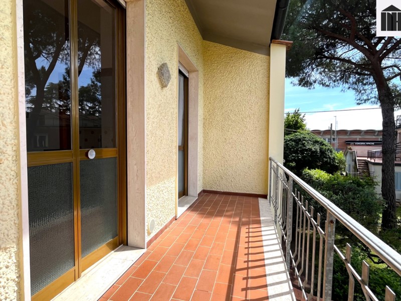 Una scala esterna conduce al primo piano, dove si trova il secondo appartamento, già abitabile. La zona giorno è composta da un cucinotto con dispensa, spazioso soggiorno e sala da pranzo con accesso diretto al balcone esclusivo. La zona notte, ben separata, comprende due camere matrimoniali e un ampio bagno finestrato dotato sia di doccia che di vasca.