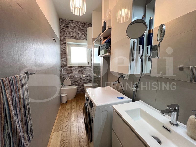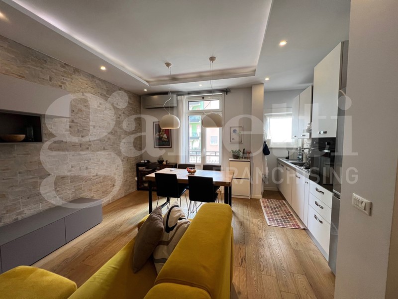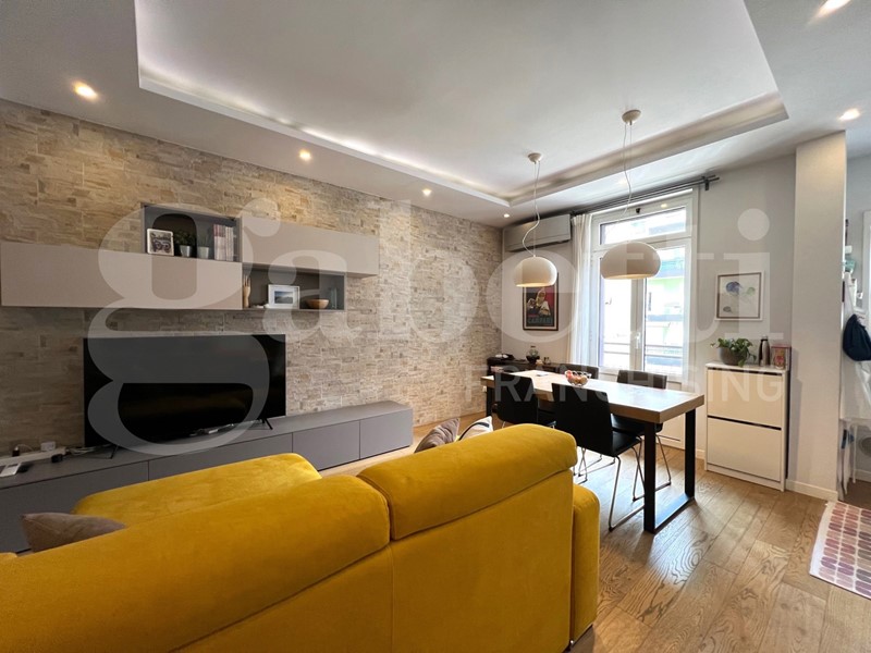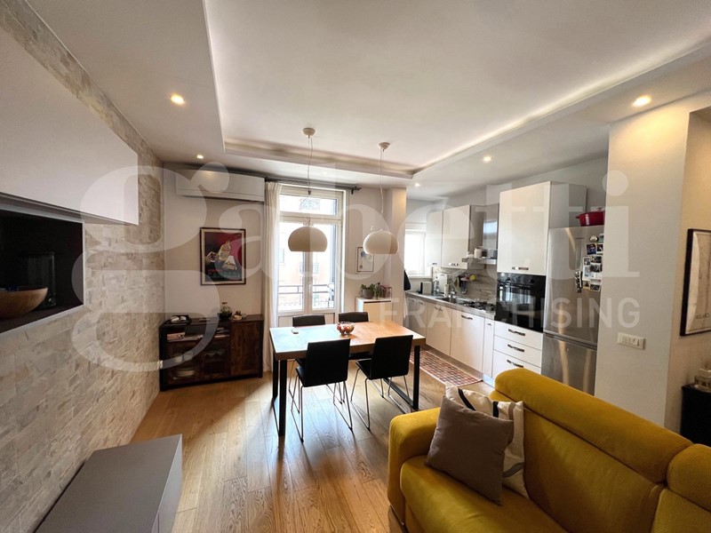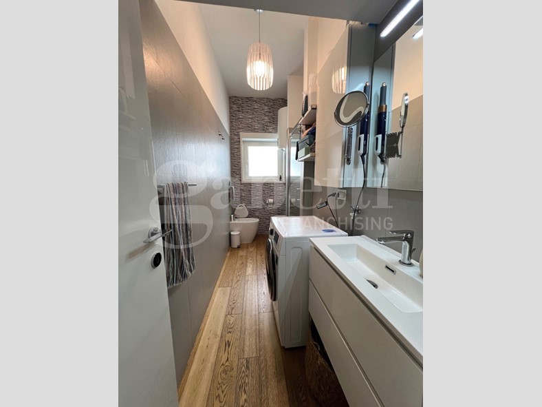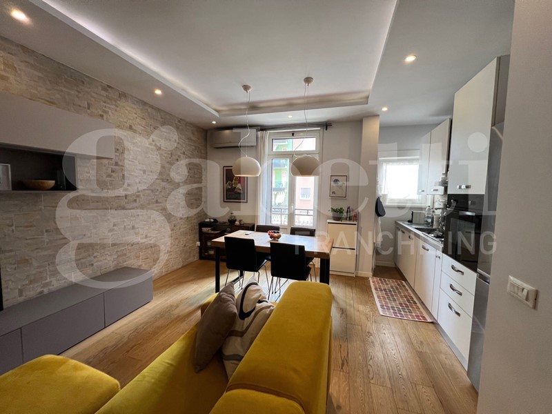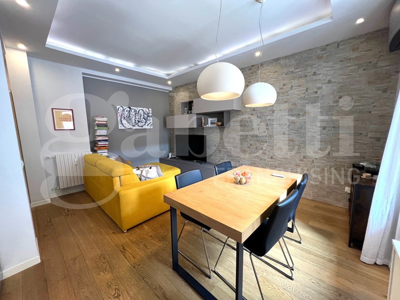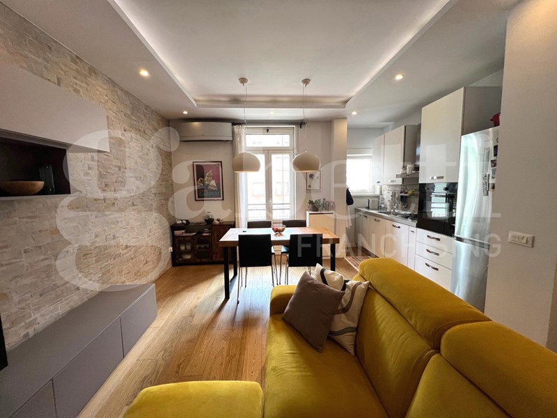 L'appartamento è stato completamente ristrutturato con un bellissimo pavimento in parquet, infissi esterni in alluminio con doppio vetro camera, porta blindata, impianto Daikin di A/C, videocitofono, controsoffitto con luci interne, certificazioni impianti disponibili.