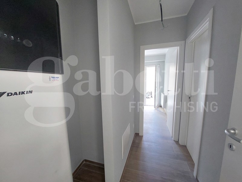 Dotato di pompa di calore Daikin per gestire acqua sanitaria, riscaldamento, raffreddamento e deumidificazione, l'appartamento offre finiture di alta qualità, come pavimento in gres effetto legno e infissi di pregio. Le tende da sole automatizzate già installate garantiscono comfort e privacy.