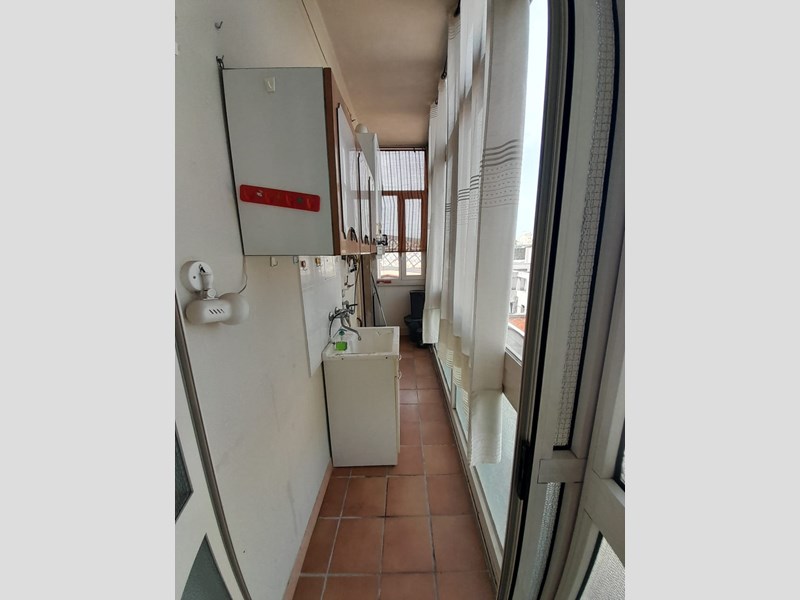 L’ appartamento è composto da corridoio, 2 camere da letto, salone doppio, cucina abitabile, bagno, ripostiglio interno e n. 2 ripostigli esterni, balcone cucina mt. 7 chiuso a vetri con allaccio acqua e scarico lavatrice. Porta blindata, caldaia a metano autonoma.