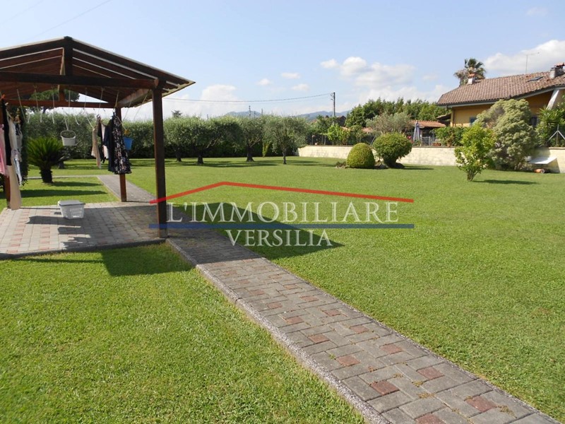 MARINA DI MASSA, località Bondano - Ricortola, a circa 900 metri dal mare VILLA BIFAMILIARE INTERA divisa in orizzontale composta da 2 appartamenti: piano terra rialzato, con doppio ingresso indipendente, 2 soggiorni con cucina a vista (oppure 1 soggiorno e camera), disimpegno, 3 camere matrimoniali, 2 bagni; l'appartamento è dotato di climatizzatore, impianto di riscaldamento a metano ed anche stufa a pellet. Piano primo: ingresso, cucina abitabile con accesso a terrazza vivibile di circa 20 mq IDEALE PER PRANZI E CENE ALL'APERTO, soggiorno CON CAMINO, disimpegno, 2 camere matrimoniali, cameretta, bagno e ripostiglio/lavanderia. Cantina di 16 mq. Giardino di circa 3000 mq dotato d'impianto d'irrigazione automatico, 3 posti auto coperti e vari posti auto scoperti.