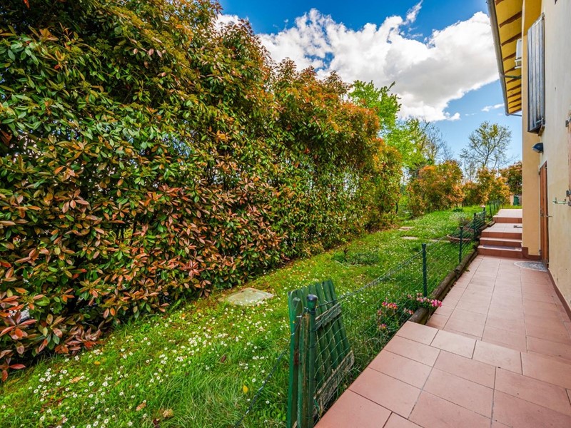 La villa è circondata da un'ampia area cortiliva comune e un giardino piantumato, perfetto per godersi la natura.