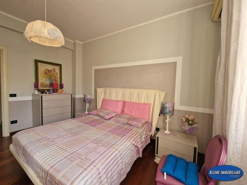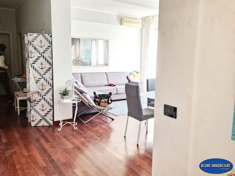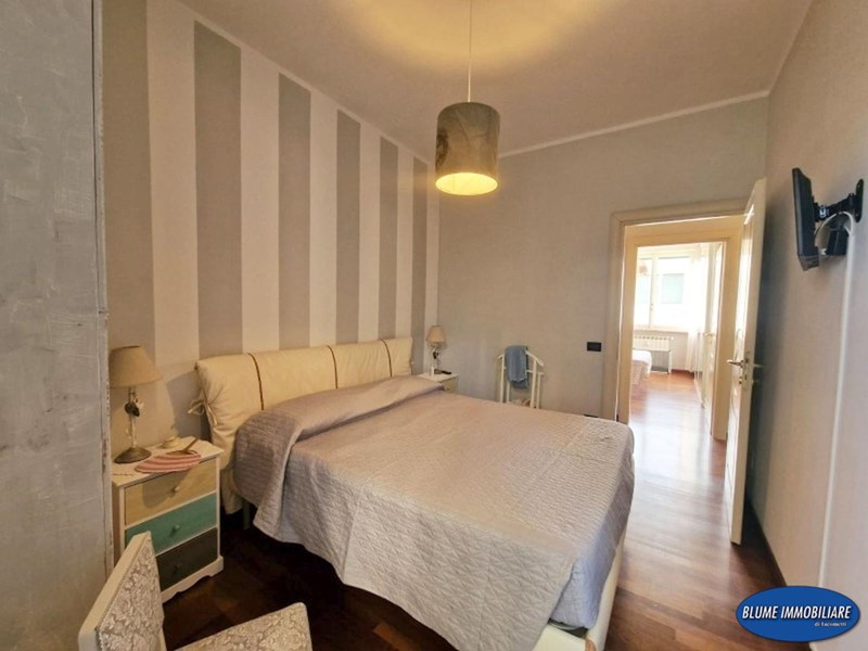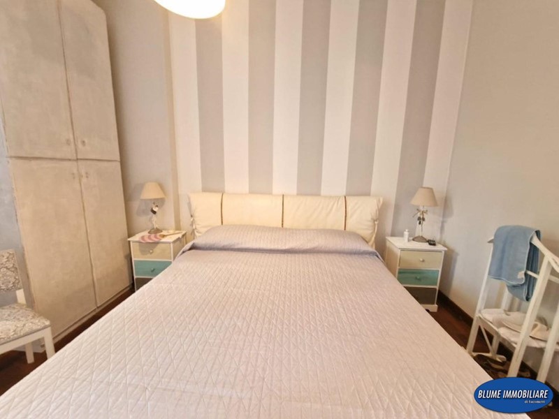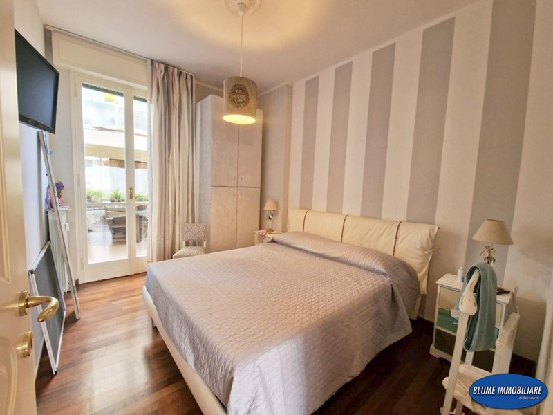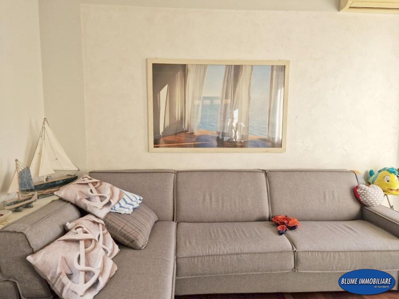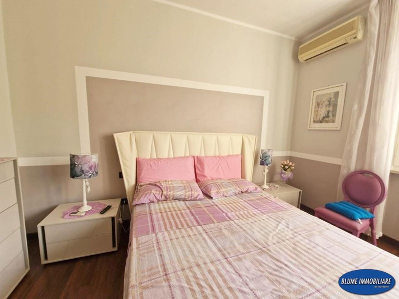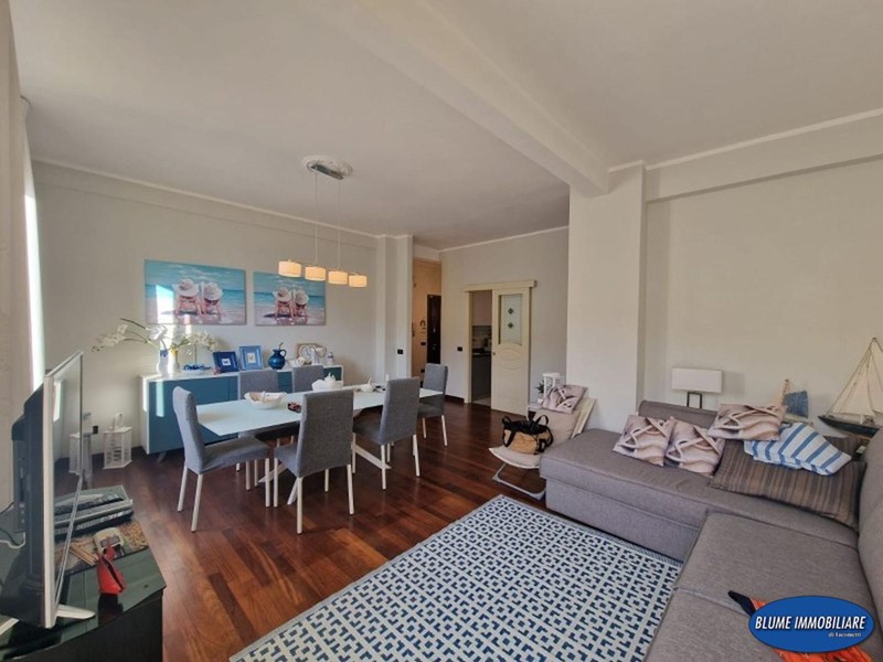 L'appartamento è stato ristrutturato recentemente con particolare cura e gusto nelle rifiniture: infissi doppio vetro, aria condizionata, parquet, portoncino blindato, impianto di allarme, cucina e bagni nuovi. La superficie è di circa mq. 110, perfetto come abitazione primaria, viste le dimensioni , ma anche come casa-vacanze data la posizione. Si compone di ingresso con attiguo vano uso ripostiglio, ampia sala con accesso a balcone con vista mare, che serve anche una camera, una bella cucina abitabile con altro balcone ad elle che prosegue nella terrazza attrezzata con gazebo e tavolo, perfetta per pranzi e cene nella bella stagione, due camere matrimoniali, ripostiglio/armadi e due bagni, entrambi con doccia e finestra.