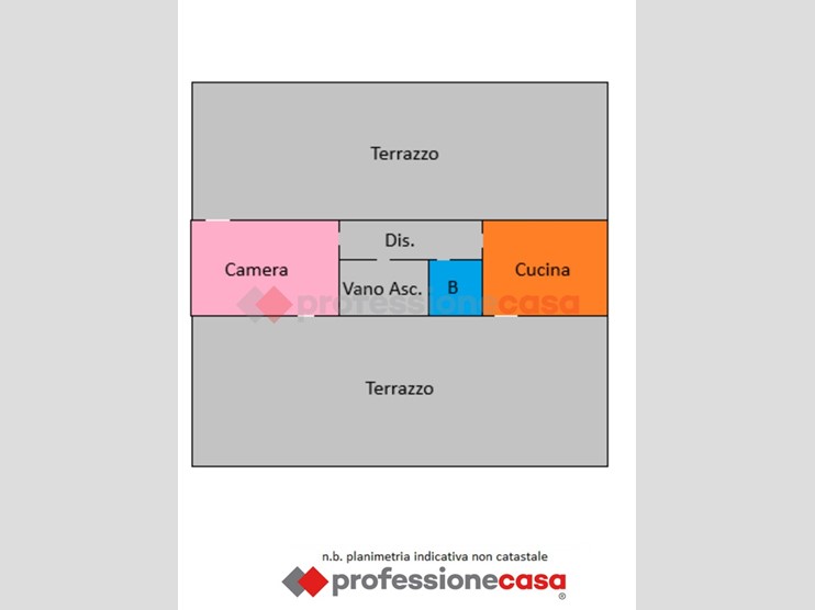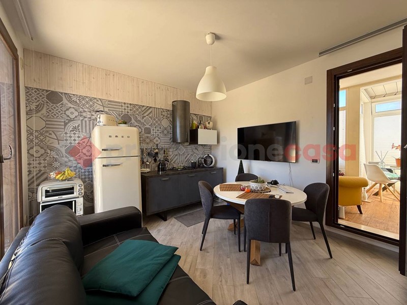 L'immobile è composto da un ingresso disimpegno, cucina abitabile con uscita su due ampi terrazzi, camera da letto matrimoniale con cabina armadio ed uscita sul terrazzo, bagno con doccia.