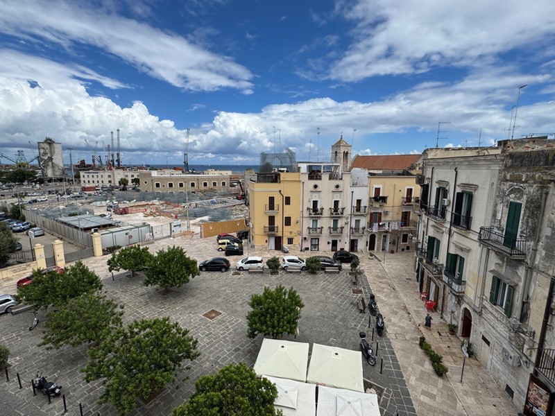 Al piano superiore il lastrico solare, domina la piazza, con il mare all'orizzonte e con l'opera in filo di ferro di Edoardo Tresoldi, che riprodurrà il profilo della chiesa di San Pietro e del vicino convento francescano, che in un lontano passato si ergevano a Bari, in corso di realizzazione.