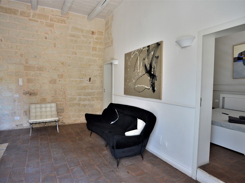 La scala in pietra è caratterizzata da un bassorilievo raffigurante il Santo patrono della città, San Nicola. Al primo piano ci sorprende la luminosità del salotto, con le volte alte mt. 3,70, con il soffitto in travi di legno e l'affaccio sulla piazza con il mare all'orizzonte; la camera da letto, affacciata sulla piazza, è comoda ed ampia. Il bagno è molto confortevole con una bella doccia.