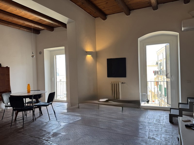 L'affascinante ed elegante appartamento, piacevolmente ristrutturato, si sviluppa su due superfici, oltre il lastrico solare, seguendo la tipologia delle palazzine del borgo, con in più il privilegio dell'affaccio sulla piazza e della vista mare.