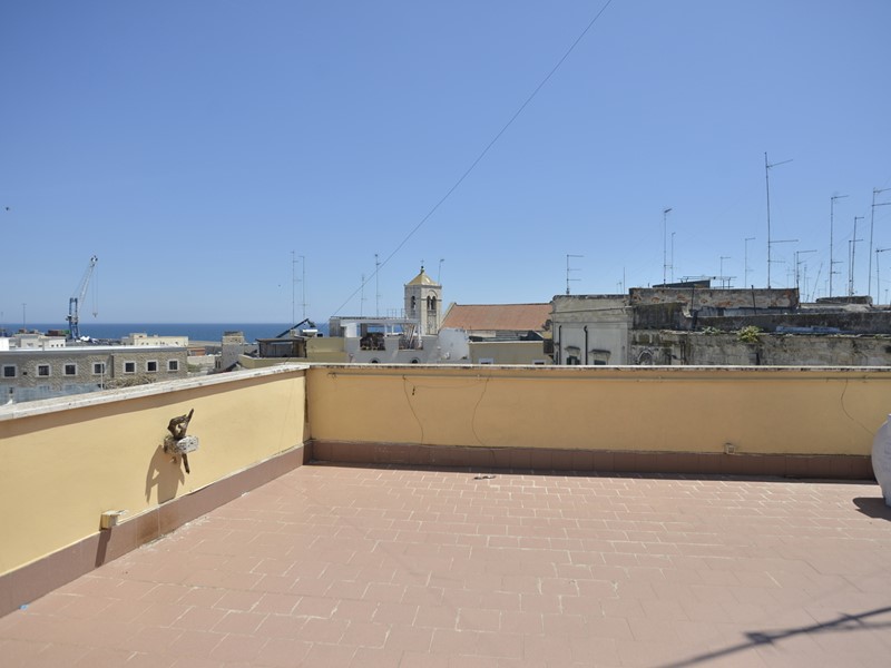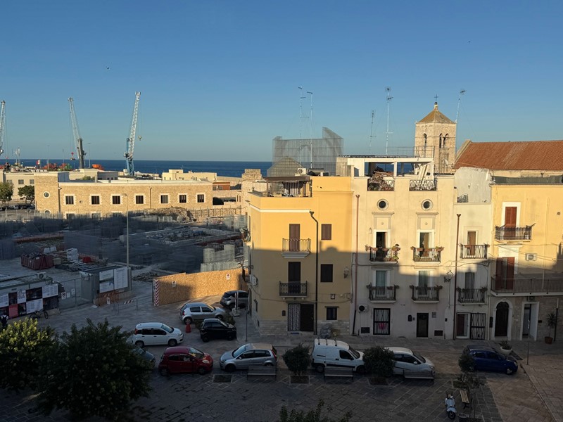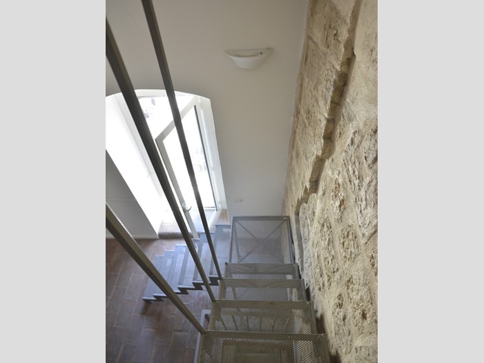 Al piano superiore il lastrico solare, domina la piazza, con il mare all'orizzonte e con l'opera in filo di ferro di Edoardo Tresoldi, in corso di realizzazione, che riprodurrà il profilo della chiesa di San Pietro e del vicino convento francescano, che in un lontano passato si ergevano nel borgo.