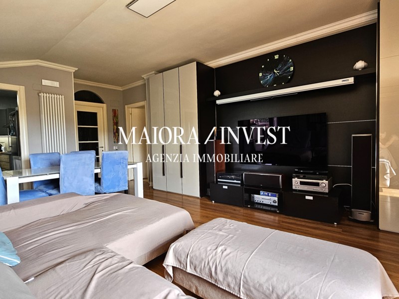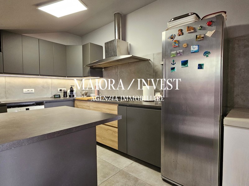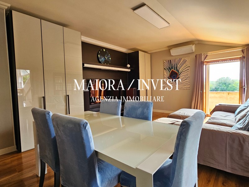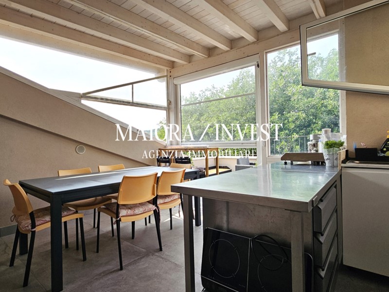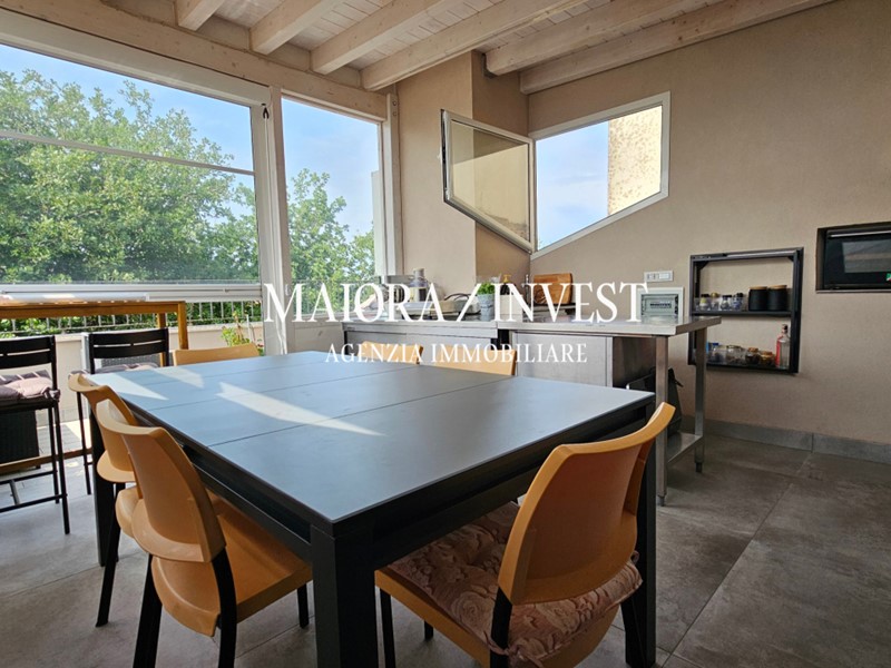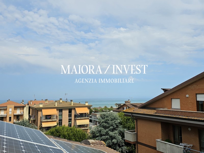 PEDASO - In comoda posizione a due passi dal mare e dalla zona centrale di Pedaso, in complesso residenziale e tranquillo e con ampi spazi condominiali, appartamento attico posto al quarto e ultimo piano di palazzina degli anni 80. L'unità immobiliare ristrutturata in buona parte nel 2023 ha una superficie di circa 147 mq oltre esterni e garage ed è composta da ingresso, ampio soggiorno, cucina abitabile, disimpegno, tre camere di cui una matrimoniale, una doppia e una cameretta, tre bagni finestrati di cui uno a servizio della camera principale e fornito di doccia, uno a servizio della cameretta e fornito di vasca e l'altro posizionato nel disimpegno, tre comodi rispostigli sottotetto e una lavanderia. Completano la proprietà due balconi di totali mq 20 di cui uno con esposizione ad ovest e l'altro con esposizione est e con gradevole vista mare, due ampie terrazze soggiornabili di mq totali 46 e di cui una accessibile sia dal luminoso soggiorno che dalla spaziosa cucina e ideale per pranzi e cene all'aperto e un garage di circa 25 mq posizionato al piano seminterrato della stessa palazzina, finestrato con serranda elettrica e comodamente raggiungibile con ascensore. L'immobile ristrutturato nel 2023 dispone di infissi in pvc con doppio vetro a tripla apertura normale/vasistas/filo d'aria, aria condizionata in due ambienti, riscaldamento autonomo a metano, zanzariere alle finestre, tapparelle elettriche, autoclave e impianto fotovoltaico personale. L'immobile in classe energetica B rappresenta un'eccellente combinazione di efficienza, comfort e valore. Ubicato in posizione strategica a due passi da tutti i servizi e dal mare è un ottimo investimento sia ad uso residenziale che turistico. Possibilità di acquisto di ulteriore garage limitrofo di mq 30 provvisto di colonnina elettrica e di un posto auto entrambi con importo da computare a parte. Codice di riferimento 1445. Agenzia Immobiliare Maiora/Invest.