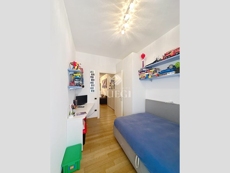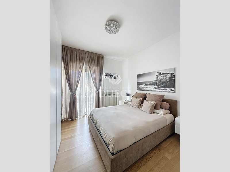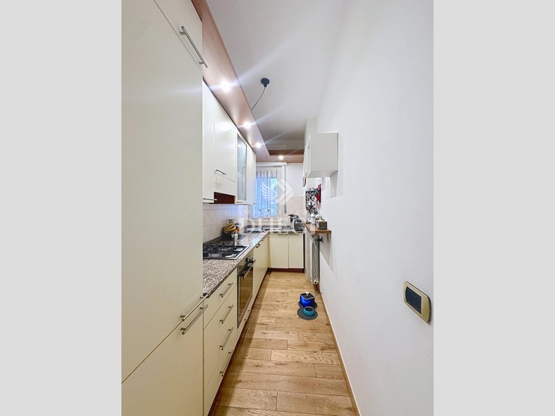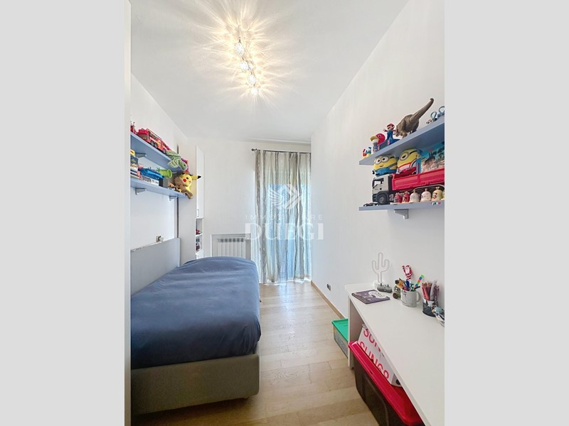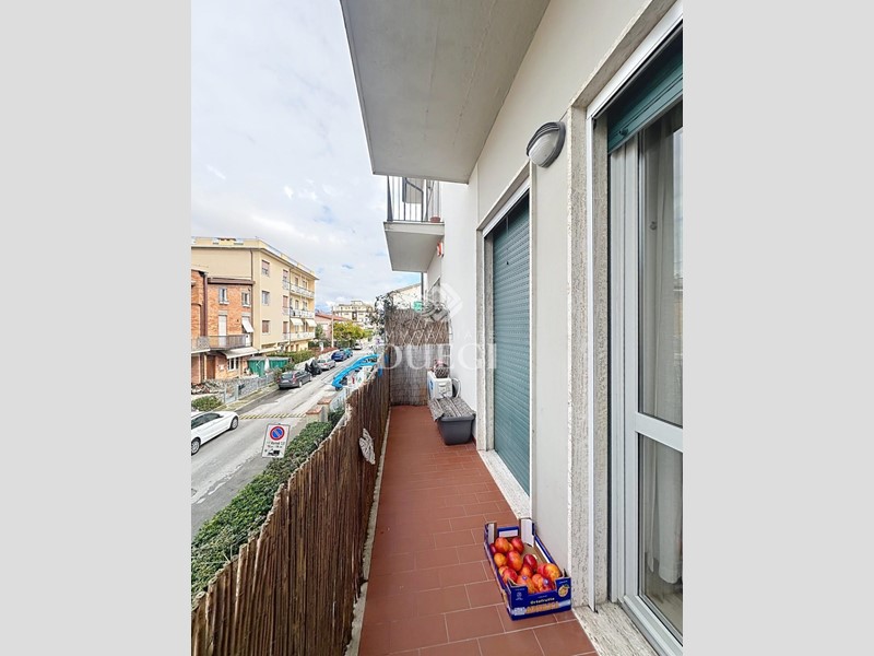 L'appartamento è composto al suo interno da ingresso, ampio soggiorno, cucinotto, camera matrimoniale, camera media con balcone, bagno con doccia e due ripostigli.