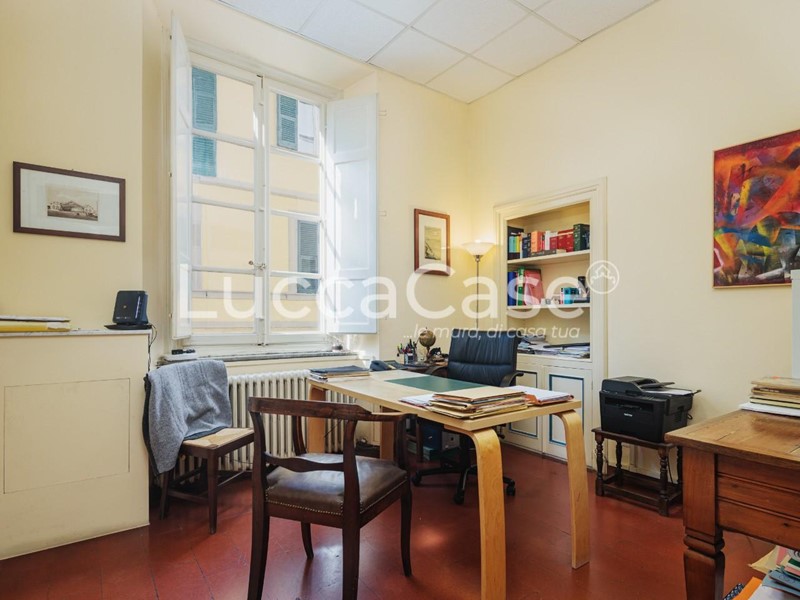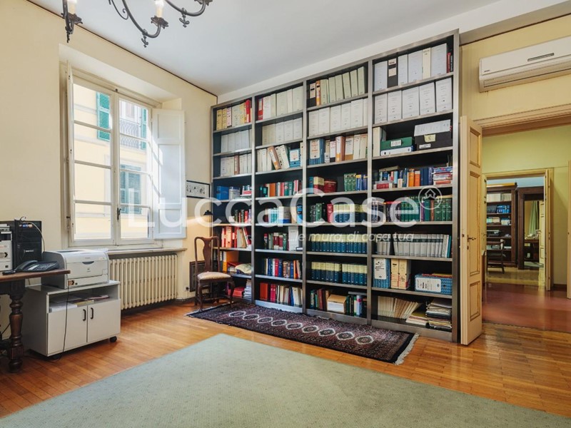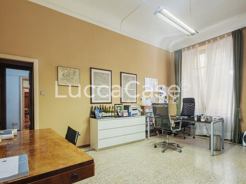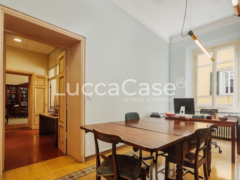 N075M- LUCCA. Centro storico. Proponiamo in vendita prestigioso Appartamento posto al primo piano di un bel palazzo antico, con affacci su una delle principali vie del Centro Storico, nelle immediate vicinanze di Piazza Napoleone. Gli ambienti sono ampi e luminosi. I soffitti sono molto alti (oltre 3 mt.) con ampie vetrate che donano luce e il classico aspetto signorile. Le generose dimensioni permettono la possibilità di essere diviso in due unità indipendenti. Attualmente è accatastato ad uso ufficio ma facilmente trasformabile in uso abitativo. Termosifoni in ghisa. Aria condizionata. Necessita lavori di ristrutturazione nell'impiantistica.