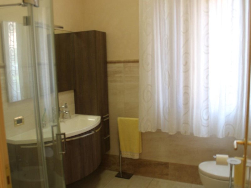 il piano primo è composta da ingresso, soggiorno, cucina abitabile, due camere, bagno, al piano sottotetto con accesso da scala interna, troviamo un ampio locale con camino e bagno. l'abitazione è fornita di condizionamento, allarme e zanzariere.