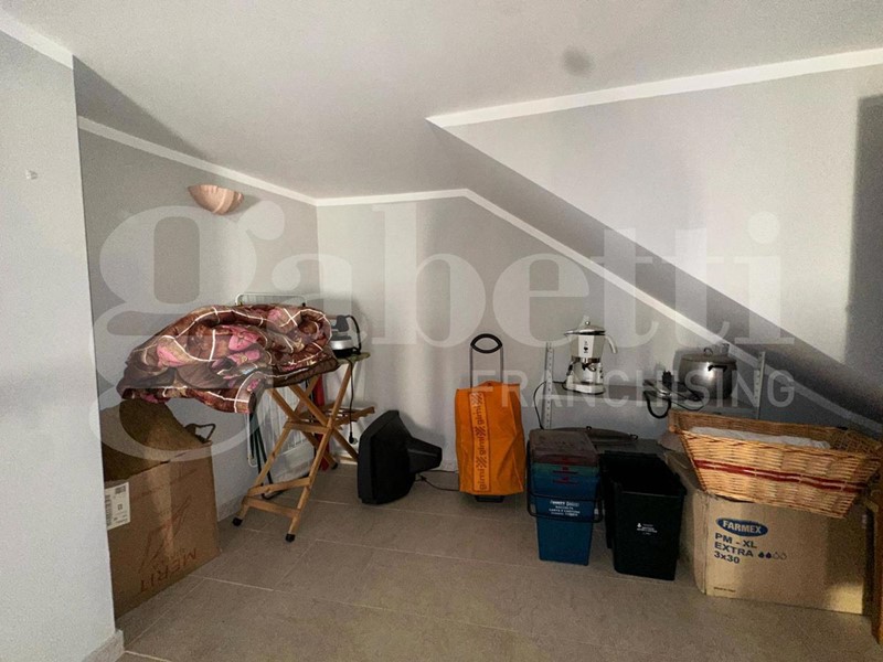 mentre dall'altro vano scala si accede alla seconda camera soppalcata utile come ripostiglio/deposito ed alla camera da letto matrimoniale con lucernaio.