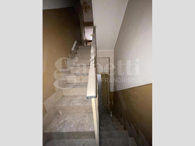 la casa ha ingresso direttamente su un grande salone distribuito in lunghezza, piccola cucina con accesso al pozzo luce e al wc, vano scale per l'accesso al primo livello. Al primo piano, è presente una grande camera da letto matrimoniale (destinabile anche a salone) con balcone esclusivo, una piccola cucina con finestra. All'ultimo piano, l'indipendente ha un disimpegno, il bagno con doccia e finestra, la camera da letto e il terrazzo a livello.