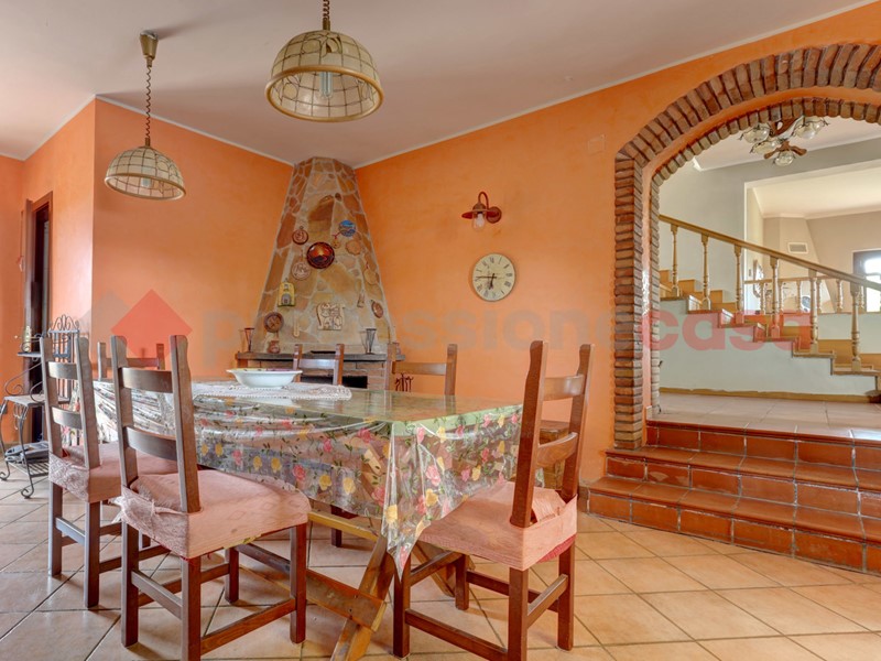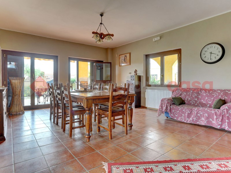 Villa unifamiliare disposta su due livelli fuori terra della superficie di 230 mq con tetto a falde. Al piano terra troviamo un ampio portico di ingresso angolare, doppio soggiorno con camino, cucina abitabile con camino, sala hobby, bagno di servizio e ripostiglio. Al piano superiore si sviluppa la zona notte, con uno spazioso disimpegno, tre camere da letto, bagno, terrazzo e un balcone. L'abitazione è circondata da un giardino di circa 500 mq, gestibile con facilità, ideale per momenti all'aria aperta. Completa la proprietà un comodo box. La villa inoltre è dotata di riscaldamento autonomo con termo-stufa a pellet, infissi in pvc con doppio vetro, persiane blindate e pozzo privato per l'approvvigionamento idrico.
