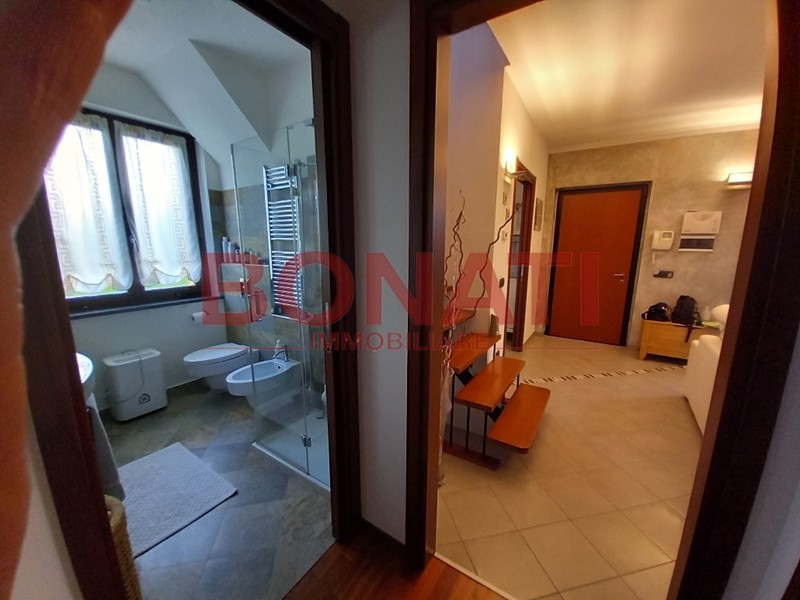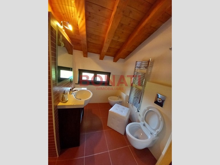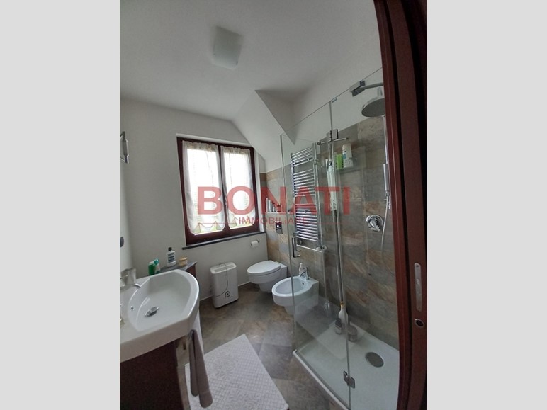 Brugnato: in prossimità del centro ma in zona tranquilla e soleggiata, graziosa semindipendente di recente costruzione, disposta su tre livelli, così meglio descritta: entrata in soggiorno, cucinotto, due camere e bagno, scala interna che porta alla splendida mansarda con travi a vista e bagno, completa la proprietà, taverna, garage con strada di accesso privata, giardino di circa mq,800 tutto pianeggiante, si vende completamente arredata.