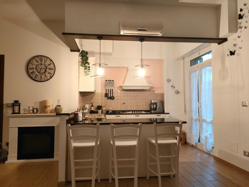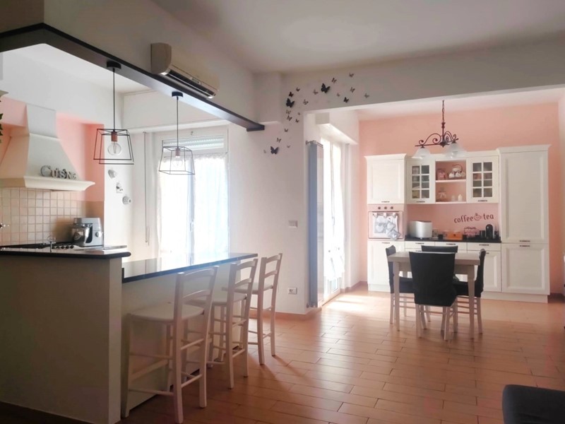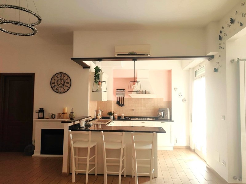 VIA NIZZA: A pochi metri dalle spiagge, ubicato in una palazzina di recentre rifacimento, dotata di ascensore che si sviluppa su tre piani e dispone di un parcheggio non assegnato, ma ad uso esclusivo dei proprietari. L'appartamento in questione si trova al primo piano e si compone di ingresso sulla zona giorno, con bellissima cucina a vista con penisola, la quale viene venduta compresa nell'immobile, terrazzo e dispensa. Finiture ricercate con pavimenti in gres porcellanato e infissi nuovi doppio vetro. La zona notte invece si compone di due bagni, uno principale con vasca e uno di servizio con doccia, ma comunque dotati di tutti i comfort, camera da letto matrimoniale e cameretta. Ristrutturato a nuovo, porte in legno di stile, portoncino blindato, riscaldamento autonomo e splitter per aria calda/fredda sia nella zona giorno che in zona strategica tra le camere. Possibilità di usufruire del lastrico solare ad uso comune, di cui attualmente ne è stato deliberato il rifacimento ( a carico quindi dell'attuale proprietario).