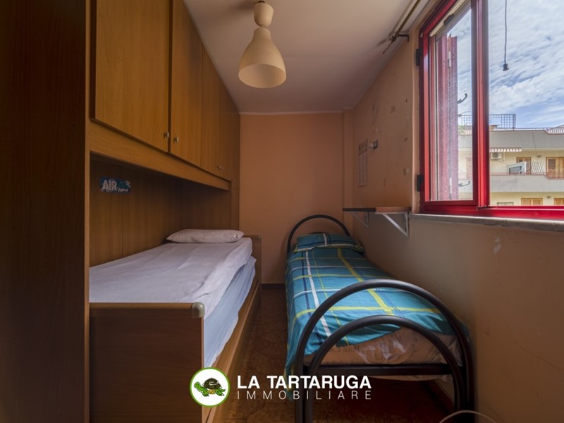 Roccalumera-Corso Umberto I c/i piazza Madonna del Carmelo.\n Appartamento semi - indipendente su due livelli, in zona tranquilla e ben servita, composto:\nal 1p. da ampia cucina soggiorno con caminetto, salone doppio, due camera da letto, una cameretta, ripostiglio e bagno. Due balconi con doppia esposizione ( uno sulla strada principale e l'altro lato mare);\nal 2p. Ripostiglio e zona lavanderia. Ampio Terrazzo di mq.105\nL'immobile è da rimodernare e si presenta in discrete condizioni.