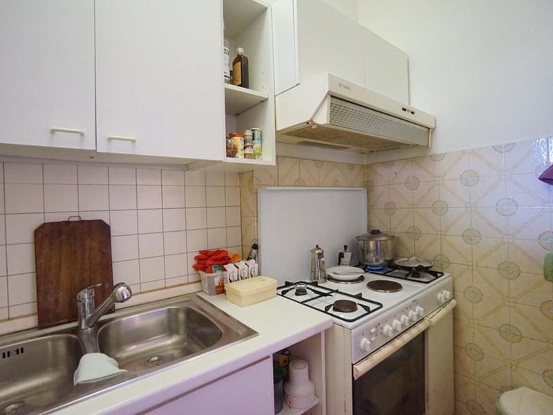 Posizionato al primo piano, è composto da ingresso su soggiorno-pranzo, cucinotto, piccola terrazza pranzabile, disimpegno notte, due camere e piccolo bagno con doccia, senza finestra.