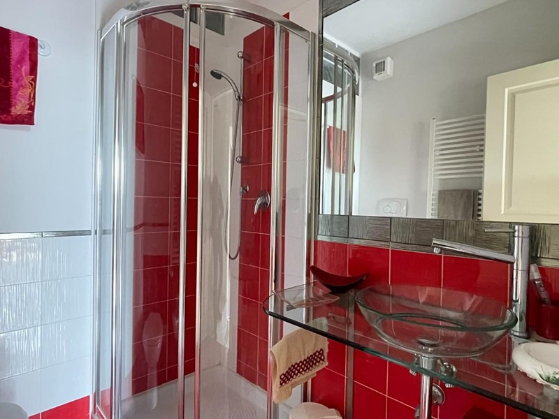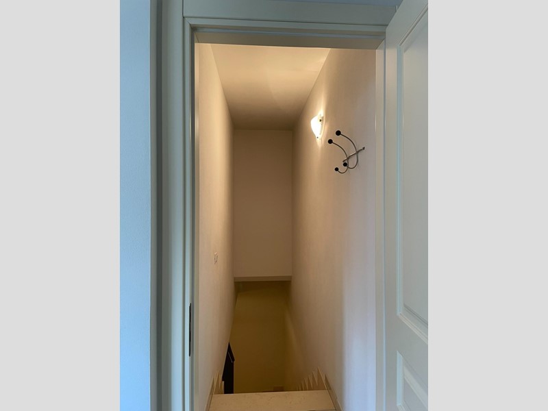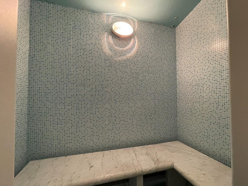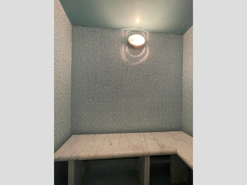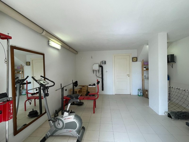 Ma questa casa riserva una sorpresa: una scala interna conduce a un'area wellness di circa 40 mq nel piano seminterrato, dotata di un lussuoso bagno turco completo di vasca di decantazione, doccia e WC. Nello stesso piano, il garage è stato trasformato in una pratica palestra privata.