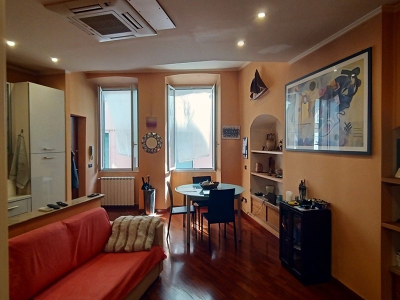 Sanremo, vendiamo IN ESCLUSIVA appartamento trilocale di mq.67, nel cuore della città a 50 metri dal porto e dal mare, vicino a una delle piazze più caratteristiche di Sanremo, piena di squisiti ristoranti, con uno scorcio di mare dalla finestra, un bellissimo alloggio sito al 2° piano senza ascensore ma con una scala molto comoda, da poco ristrutturata, ingresso in living con soggiorno e angolo cucina, disimpegno zona notte e bagno, dove troviam due camere da letto e il bagno con la finestra, un balconcino nel quale è stata posizionata la zona lavanderia. Le finiture sono ottime tutto l'appartamento in Parquet originale Doussie e in bagno una bellissima Bisazza, serramenti in doppio vetro alluminio, persiane stesso materiale, riscaldamento autonomo a gas di citta e impianto di climatizzazione canalizzato nella zona giorno e due split per ciascuna camera. L'appartamento viene venduto arredato e pronto all'uso, impiano elettrico a norma e il condominio ha efffettuato tutti i lavori di restauro facciata, rifacimento del tetto e delle gronde, insomma un alloggio in centro Sanremo dove portare solo le cose personali. Le spese condominiali sono all'incirca di € 600 anno.