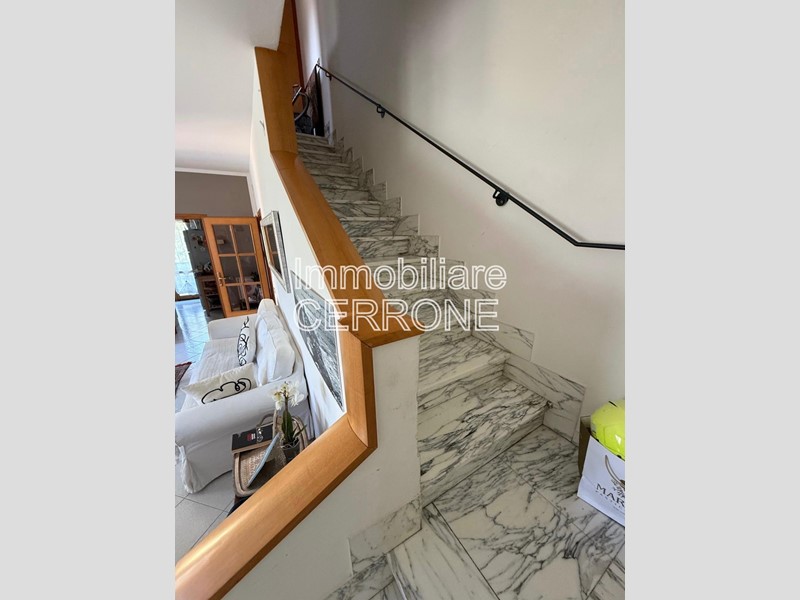 Dalla sala, tramite un’ elegante scala in marmo si accede poi al piano superiore dove troviamo la zona notte composta da 3 camere da letto, di cui due matrimoniali ed una cameretta, un terrazzo, disimpegno e bagno finestrato.