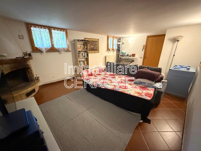 Infine al piano inferiore, con accesso sia dall’interno tramite scala dalla zona giorno e sia dall’esterno, abbiamo una taverna con camino oltre ad un garage.