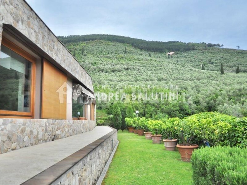 Buti - In posizione panoramica e a due passi dal centro abitato proponiamo questa bellissima villa singola dal design contemporaneo. L'immobile in perfette condizioni si sviluppa tutto su un unico livello ed è caratterizzato da ampie vetrate, volumi e forme accattivanti e facciate in pietra. Al suo interno si compone da ingresso in ampio soggiorno con vista sui monti , pochi gradini sopra troviamo una zona relax caratterizzata da un caminetto a centro stanza, cucina abitabile con loggia per cene all'aperto, bagno di servizio con doccia, disimpegno notte dove troviamo 3 camere, tutte con possibilità di soppalco, bagno principale con vasca e comodo locale lavanderia; completa la proprietà giardino sui 4 lati molto curato di circa 500 mq e 2 posti auto coperti. Possibilità di realizzare una piscina sulla parte panoramica e di realizzare un'altra stanza sopra la parte centrale dell'abitazione dove abbiamo una parte di tetto piano. Oggetto unico nel suo genere, ottime le finiture, parquet in tutta l'abitazione, allarme, cancello motorizzato, facciate in pietra. Classe energetica: C - Rif. 2262-LO