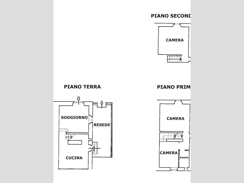 Piano Terra; Ingresso, cucina abitabile e soggiorno: Piano Primo; Camera e studio/camerina: Piano secondo Camera.