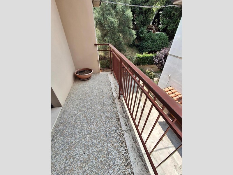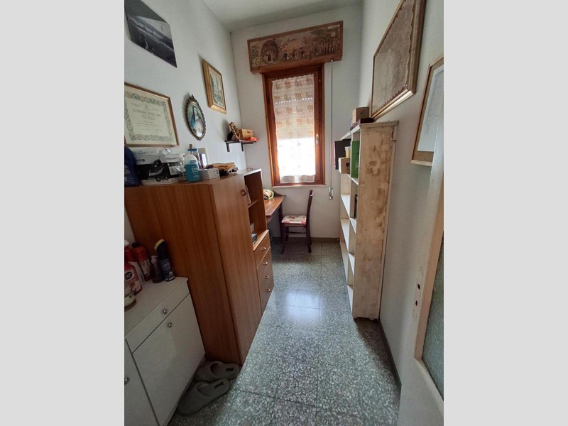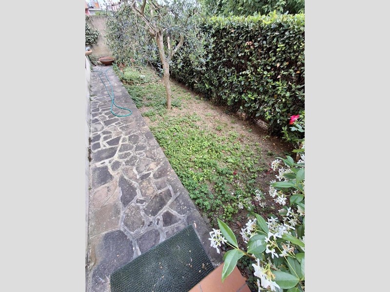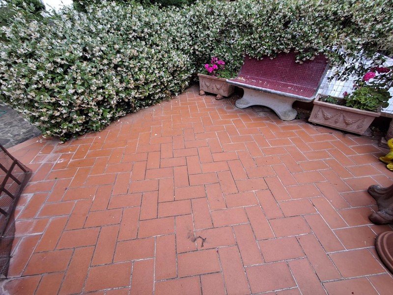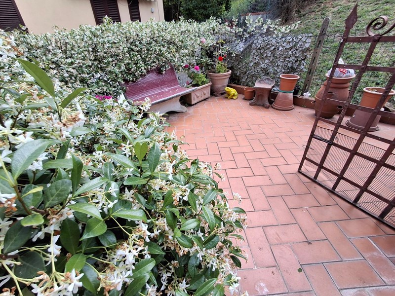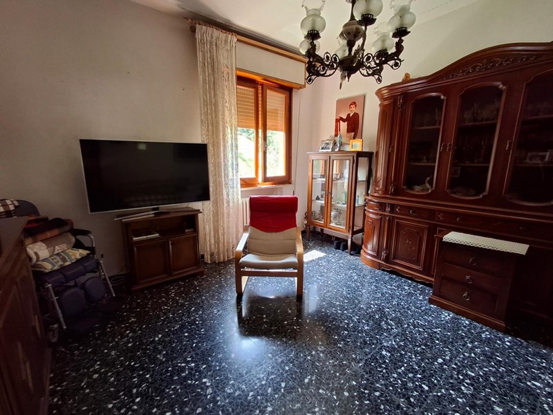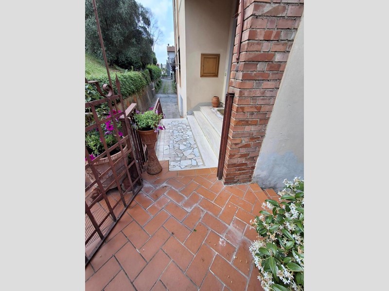 Montelupo Fiorentino, pressi. In zona residenziale e in via percorsa solo da chi vi abita. Ampio appartamento con ingresso indipendente, posto al secondo ed ultimo piano, di una bifamiliare libera su quattro lati e composto a piano rialzato da ingresso e vano scala; al piano secondo da ingresso, tinello-pranzo con terrazzo e cucinotto finestrato, sala, due ampie camere matrimoniali, di cui una con terrazzo, bagno e due ripostigli entrambi finestrati e uno con terrazzo. Completano la proprietà una serie di locali accessori comunicanti con un garage posti al piano terra e collegati anche internamente all'appartamento; un ulteriore garage e un giardino comunicante con una bella terrazza abitabile. L'appartamento degli anni '60 presenta le finiture di quel periodo, il bagno fu recentemente rifatto ed è in generale in buonissime condizioni, ma necessita di lavori di ristrutturazione per essere rimodernato. Offre ampi spazi e possibilità di realizzare la terza camera e un ulteriore bagno. Prezzo di vendita: 255.000 Euro.