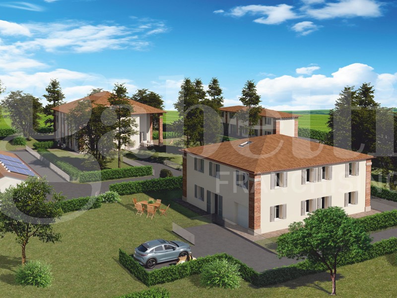 SAN GIORGIO DI PIANO: VILLA MONOFAMILIARE IN CORTE - Ricostruzione di corte colonica, alle porte del paese in posizione verde e tranquilla. Gli edifici, ad altissima efficienza energetica, saranno totalmente ricostruiti con struttura in legno con sistema XLAM. Le porzioni di villa di ampia superficie sono dotati di grandi giardini di proprietà. Ad alta efficienza energetica, in classe A4, con struttura antisismica. Sarà possibile usufruire di ottime detrazioni fiscali. Ampia villa monofamiliare, si sviluppa su due piani. P.T. ingresso, salone con cucina abitabile a vista, bagno. 1°P. tre camere da letto (una con guardaroba), due bagni. Autorimessa doppia di 50 mq e giardino di 1000 c.ca mq. con accesso carrabile e doppio posto auto.