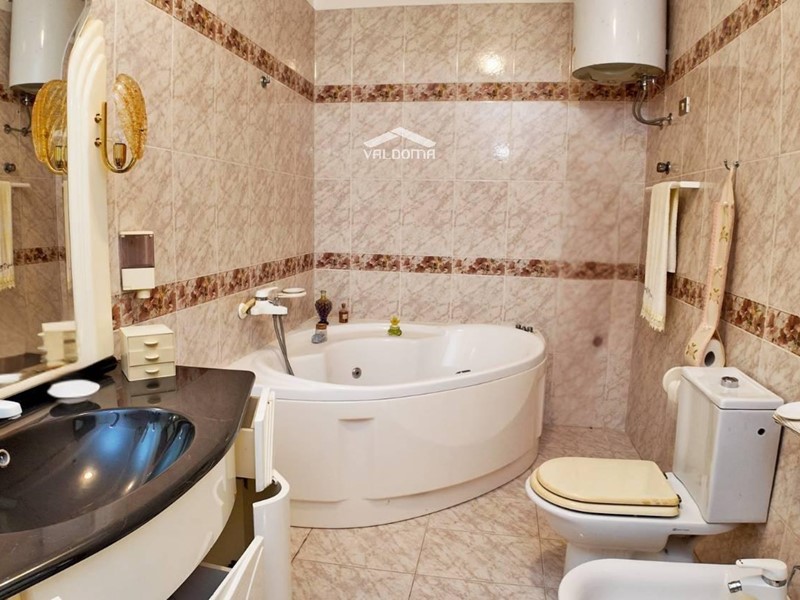 un ampio soggiorno con camino, cucina abitabile, due camere da letto (una con bagno privato e vasca idromassaggio), secondo bagno per gli ospiti, comodo ripostiglio, cantina con soffitto alto 2,30 m e terrazzo accessibile.
